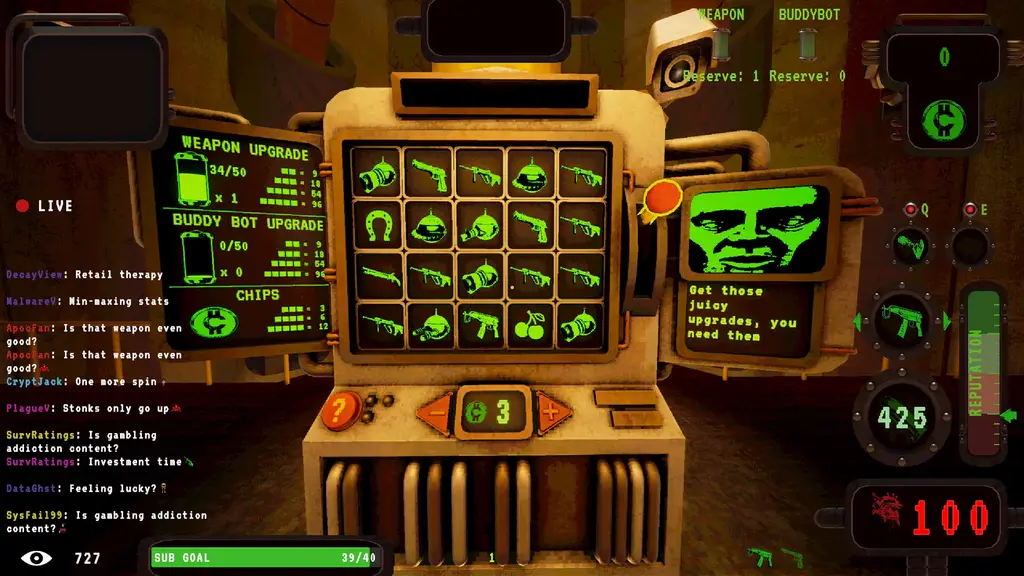 Геймплейная петля проекта строится вокруг непрерывной зачистки арен, доверху набитых агрессивными мутантами и хитрыми ловушками. Замкнутое пространство совершенно не прощает медлительности. Растущее давление волн противника заставляет моментально реагировать на любые угрозы, что обеспечивает невероятно напряженный, пульсирующий игровой опыт с эффектом постоянного присутствия. Между изматывающими забегами выдается лишь короткая передышка в безопасном хабе. Именно там заработанные на трансляции кредиты вслепую спускаются на прокачку характеристик, давая игроку робкую надежду прорваться немного дальше при следующей попытке.