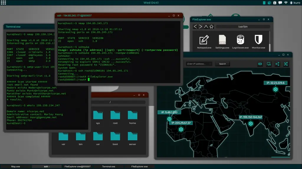 В данном инди-проекте 2017 года карьера киберпреступника стартует с базовой операционной системы и пары простейших программ. Выполнение первых контрактов приносит необходимый опыт. Постепенно вы устанавливаете продвинутые утилиты и учитесь виртуозно владеть терминалом, который выступает главным инструментом для обхода чужой киберзащиты. Такая достоверная механика заставляет мыслить нестандартно, обеспечивая максимальное погружение в суровую рутину профессионального взломщика.