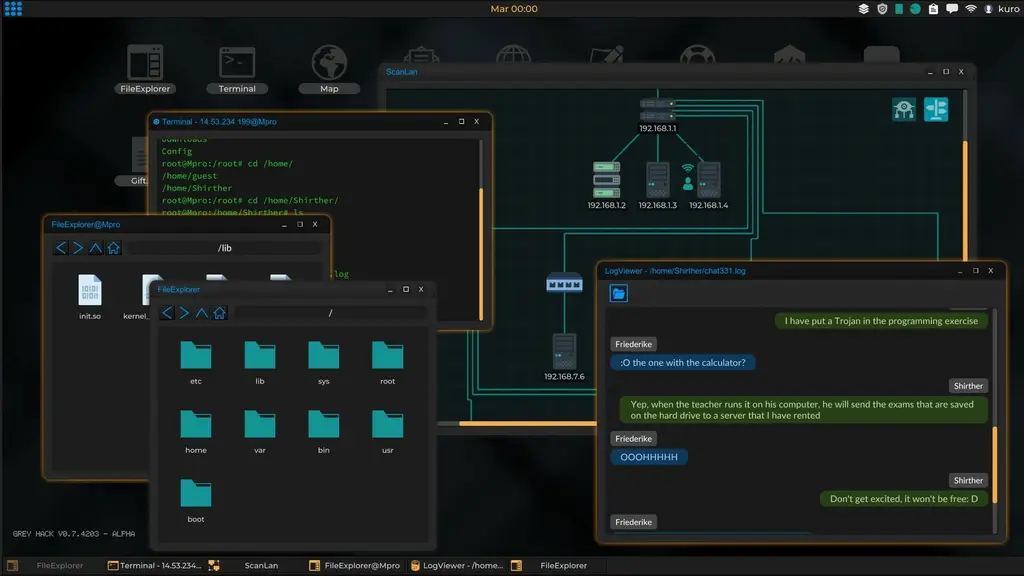 Стать цифровым призраком и взламывать защищенные серверы теперь может каждый, кто решит запустить Grey Hack. Этот симулятор хакера дает полную свободу действий в процедурно генерируемой сети виртуальных компьютеров. Чтобы начать путь от зеленого новичка до легенды даркнета, достаточно скачать игру через торрент на ПК и загрузить полную версию на свой компьютер.