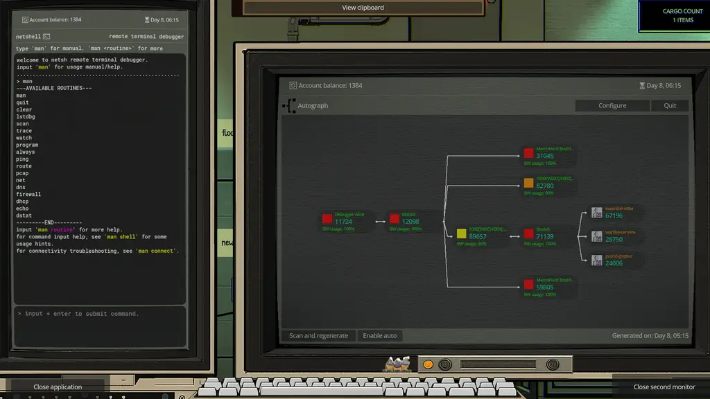 Творение независимых разработчиков предлагает глубокое погружение в суровую ИТ-сферу за счет аутентичного интерфейса консольного терминала. Используя команды для сканирования техники, отслеживания пакетов и настройки приложений, вы получаете неподдельное чувство контроля над сложнейшей инфраструктурой, что заставляет мозг работать на пределе инженерной смекалки.