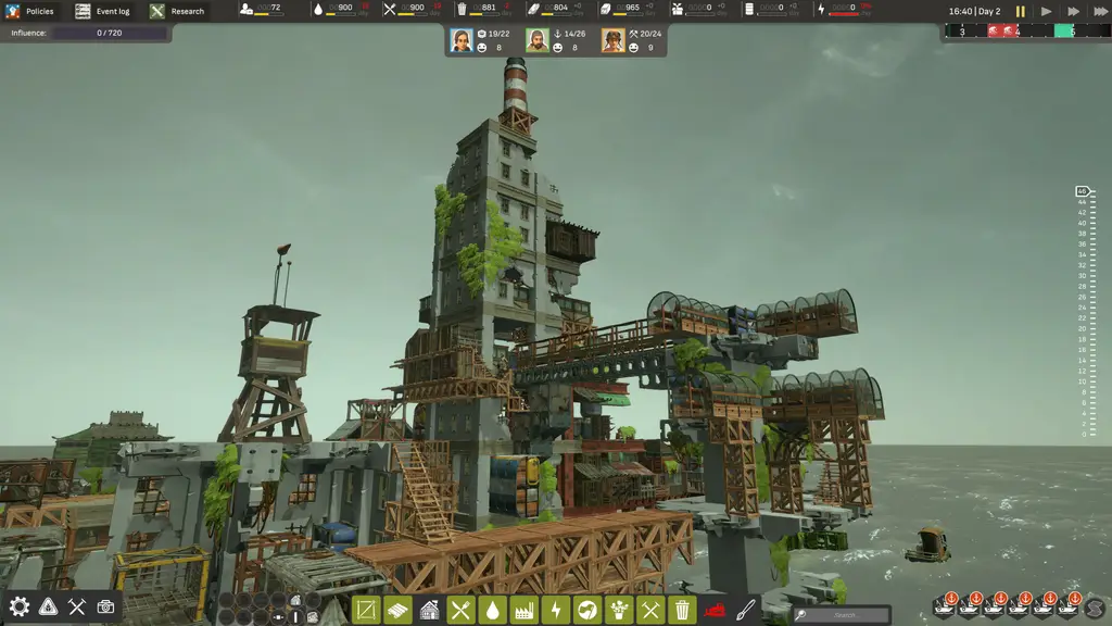 В этой инди-стратегии трехмерное строительство завязано на правдоподобной модели веса, опоры и устойчивости, что делает каждый этаж важным решением. Вы не просто ставите здания по шаблону, а буквально боретесь с гравитацией, штормами и ограниченным пространством. Такой подход превращает развитие поселения в напряженный инженерный вызов.