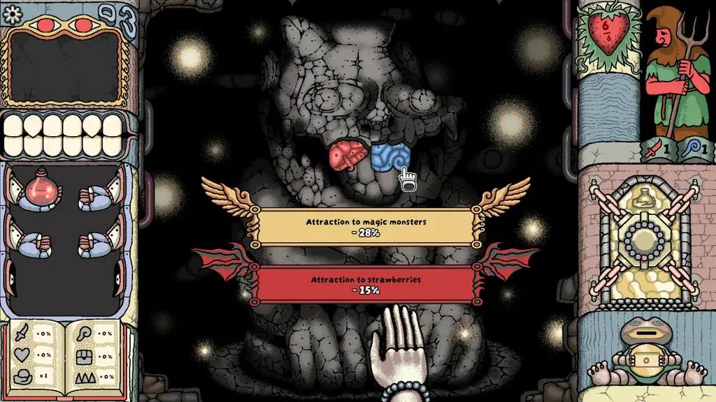 У этого инди-проекта монстры, тайники и артефакты работают не только как механики, но и как образы вины, света и тревоги. Герои здесь существуют без ясной цели, зато с внутренним вектором, поэтому каждое столкновение читается глубже обычной тактики. Особенно запоминается мотив сияющих зубов — странный, тревожный и очень атмосферный символ.