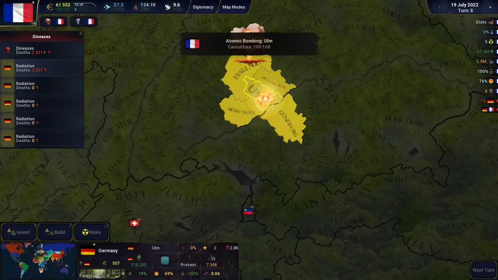 Военный аспект тайтла стал значительно динамичнее благодаря ускоренному набору армий и их оперативному перемещению по карте мира. Локальные конфликты вспыхивают молниеносно, а появление в арсенале ядерного оружия кардинально меняет правила ведения поздних войн, заставляя полководца тщательно просчитывать катастрофические последствия каждого нанесенного удара.