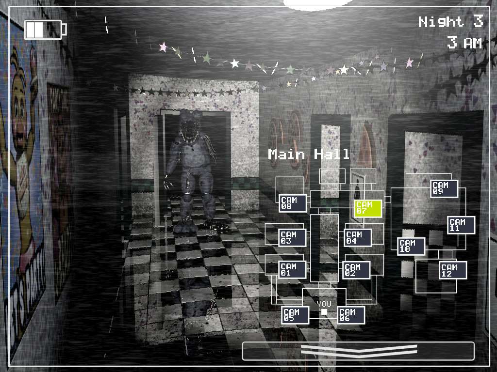 Пять ночей, каждая сложнее предыдущей. За их прохождением открывается шестая — и Custom Night для тех, кому всего этого показалось мало.