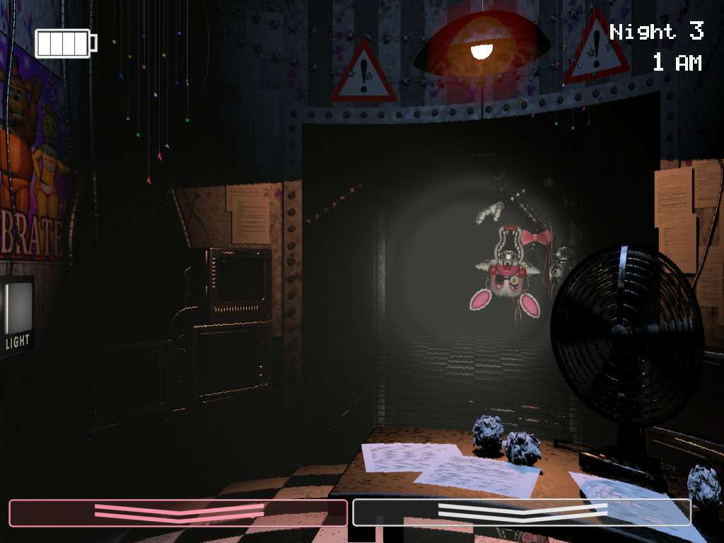 Каждая смена длится с полуночи до шести утра — семь с небольшим минут реального времени, которые ощущаются значительно дольше. Охранник не двигается с места: он переключает камеры, светит фонариком в тёмный коридор и следит за двумя вентиляционными шахтами. Маска Freddy Fazbear способна сбить с толку часть преследователей, а батарейки фонарика, в отличие от первой части, не садятся. Попасться Аниматронику — ещё не финал: иногда вместо экрана смерти запускается 8-битная мини-игра, добавляющая новый слой к общей истории.